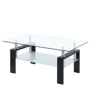 Modern Tempered Glass Coffee Table With 2 Layers And Waterfall Edges For Living Room - Transparent