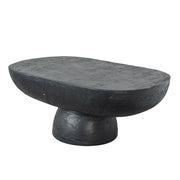 • Modern and Organic Design: This coffee table features a long oval top, a rounded pedestal base, and a bold colorway, combining modern and organic motifs.