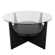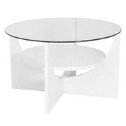 - Unique Design: The U-Shaped coffee table features a circular glass top and a seemingly floating circular shelf, creating a distinctive and stylish appearance for any living space.
