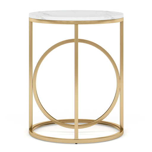 View full detailsModern Elegance: White faux marble top with natural veining paired with a gold powder-coated O-frame for a refined, timeless look Sturdy Construct...