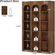 5 Tier Farmhouse Arched Bookcase For Living Room - Rustic Brown