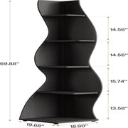 5 Tier Wavy Corner Bookshelf And Plant Stand For Living Room - Black