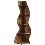 5 Tier Wavy Corner Bookshelf And Plant Stand For Living Room - Brown
