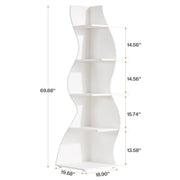 5 Tier Wavy Corner Bookshelf And Plant Stand For Living Room - White