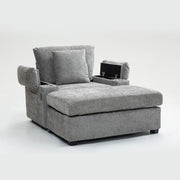 Modern Oversized Chair With Ottoman, Chenille Fabric Sofa Bed, Accent Chair Comfy Sofa With Cupholders And USB Charging Ports Chair For Living Room - Gray