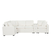 Modular L-Shaped Sectional Sofa Bed With Pull-Out Sleeper, Cup Holders, And Storage - White