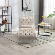 Velvet Chaise Lounge Indoor, Button Tufted Upholstered Chair With Pillow - Beige