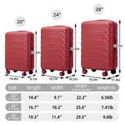 Set 3 Pieces 20" / 24" / 28" Abs Spinner Wheel Luggage, Matching Color, With Combination Lock - Wine Red
