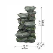 Indoor Outdoor Stone Water Fountain, 4 Tier Polyresin Cascading Rock Bowl Freestanding Fountain With LED Ligh - Gray