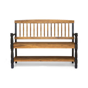 Imperial Slatted Bench With Built In Shelf - Teak / Black