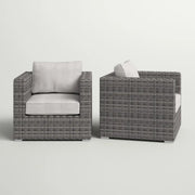 - Stylish Design: This set of two patio chairs features a modern boxy silhouette wrapped in all-weather rattan, complemented by a sleek finish for a contemporary look.