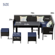 Modern Small Space Patio Furniture 7 Piece Outdoor Set With Waterproof Cushions - Blue / Gray