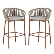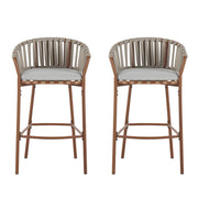 Lodi - Outdoor Matal Rope Barstool, Teak / Beige (Set of 2) - Teak / Beige