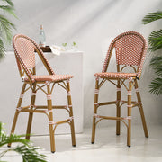 Outdoor Rattan French Barstool With Bamboo Aluminum Frame, Seat Height (Set of 2) - White / Black