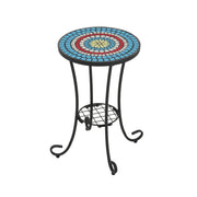 Ceramic Tile And Iron Patio Side Table With Shelf