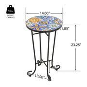 French Country Patio Side Table With Vibrant Tile Top