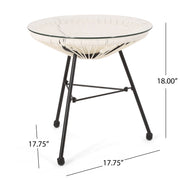 Nusa - Side Table With Tempered Glass Top And Polyethylene Rattan Base - White