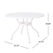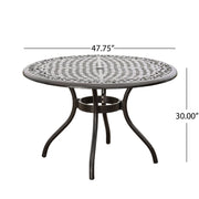 - Intricate Detailing: Featuring a lattice and scrollwork tabletop, this table exudes elegance and sophistication, while its convenient umbrella hole provides practicality for sunny days, offering shade for comfortable outdoor dining experiences.