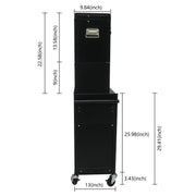 6 Drawer Lockable Tool Cabinet On Wheels Steel Rolling Tool Chest With Detachable Toolbox, 2 In 1 Garage Workshop Storage Organizer With 4 Universal Casters - Black