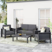 Acacia Wood Outdoor Loveseat And Coffee Table Set With Cushions - Dark Gray