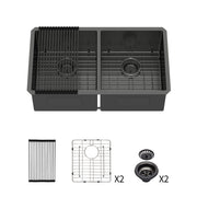 Double Bowl Undermount Kitchen Sink 16 Gauge 33" X 19" With Dual 10" Deep Basins - Gunmetal Black