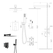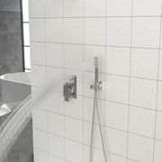 - Included Components: 12 inch square rain shower head, shower arm, handheld shower head, 59" shower hose, shower holder, water control valve, parts, and installation instructions.