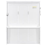 Queen Size Murphy Bed With Desk, LED Lights & USB Charging Station - White