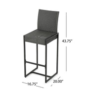 Outdoor Rattan Bar Chair With Metal Legs - Black