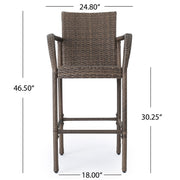 Outdoor Wicker Barstools Faux Rattan Iron Frame (Set of 2) - Gray