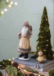- Rustic Santa Design: These Christmas decorations feature a classic Santa motif with a modern rustic twist, complete with a long beige coat, occasional fur details, and frosted rock accents beneath the boots.