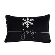 Velvet Pillow With Embroidered Joy And Frosty Snowflake, For Christmas Halloween Holiday Decor (Set of 2) - Black White