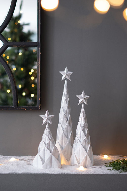 View full detailsElegant Design: This set features three white polyresin trees with a stunning silver foil finish and festive star toppers, providing a modern...