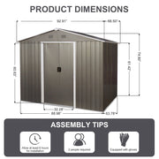 8Ft x 6Ft Outdoor Metal Storage Shed With Floor Base (SKU: W540S00012) - Gray