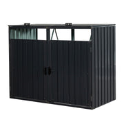 Garbage Bin Shed Stores 2 Trash Cans Metal Outdoor Bin Shed For Garbage Storage, Stainless Galvanized Steel, Bin Shed For Garden Yard Lawn - Charcoal