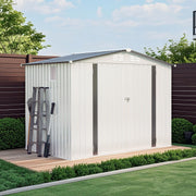 Metal Outdoor Storage Shed 8 X 6 Ft With Pitched Roof And Side Window - White / Gray